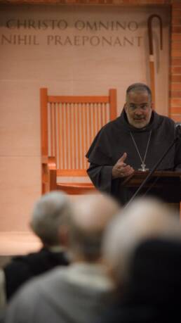 We usually ask someone to give us conferences during the week. This year we were grateful to have Bishop John Stowe, bishop of Lexington, give our conferences.  Bishop Stowe took his solemn vows as a Conventual Franciscan in 1992 and was ordained as a priest in 1995. He served in various capacities in Texas, eventually being elected Vicar Provincial of the Franciscan Province of Our Lady of Consolation. In 2015, Pope Francis named him Bishop of Lexington where he still serves.